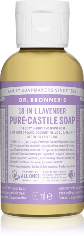 Polyvalent et efficace, le savon liquide Dr. Bronner’s Pure-Castile Liquid Soap Lavender est un allié numéro un du foyer minimaliste. Fabriqué à partir d’ingrédients biologiques et certifiés équitables, il nettoie vos mains, votre corps, vos cheveux et votre maison sans nuire à l’environnement. Infusé de parfums d’huiles essentielles de lavande et de lavandin, il apaise l’esprit et le corps.