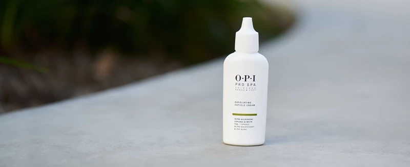 Appliquez le baume exfoliant OPI Pro Spa sur les cuticules et laissez agir. Essuyez ensuite avec un coton démaquillant et repoussez les cuticules. Enfin, enlevez-les avec une pince à envies ou des ciseaux de manucure.