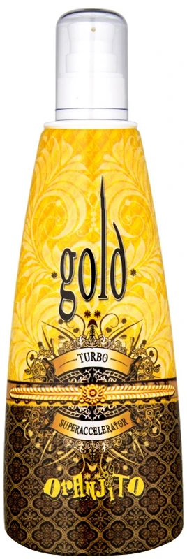 Le produit de bronzage pour solarium Oranjito Max. Effect Gold Turbo vous aide à obtenir un bronzage parfait tout en apportant les nutriments nécessaires à votre peau.